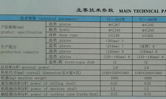 陶瓷機(jī)械設(shè)備主要參數(shù)一覽表